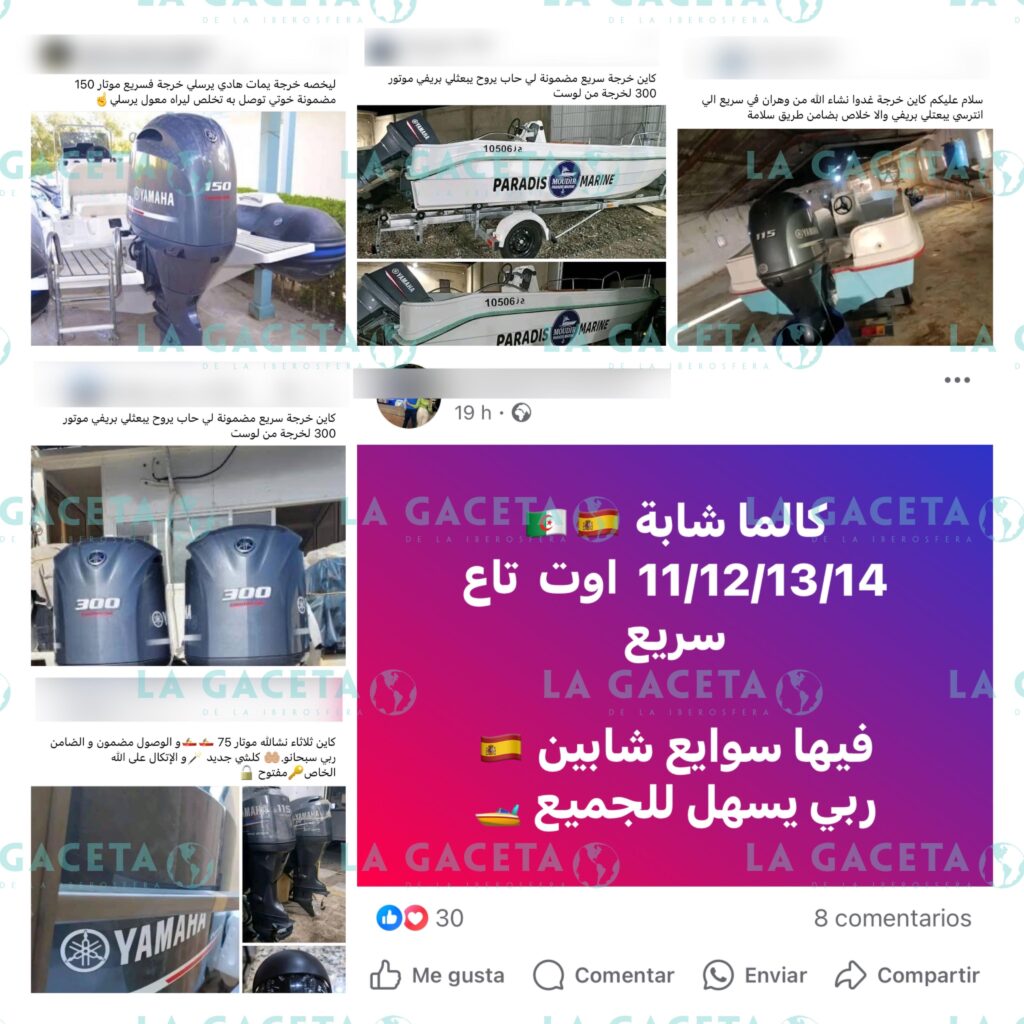 Los anuncios, canalizados principalmente a través de un grupo de Facebook con más de 30.000 seguidores, detallan la disponibilidad de un elevado número de embarcaciones que partirán desde el litoral argelino, especialmente desde las áreas de Orán y Argel. Estas publicaciones promocionan salidas previstas para los días 11, 12, 13, 14 y 15 de agosto. Sin embargo, debido a la creciente demanda, algunas embarcaciones podrían zarpar incluso antes de lo anunciado, lo que complica la respuesta de las autoridades españolas.